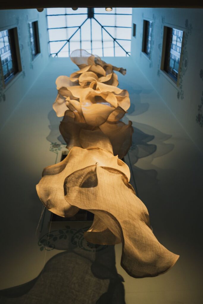 El eje central de la exposición es la colaboración inédita entre LedsC4 y ELIURPI, dúo artístico que explora la forma, el volumen y la materialidad desde una poética propia. Para esta ocasión, presentan en exclusiva su instalación ALGA, compuesta por dos piezas diseñadas con capas de alga marina y rafia en formas orgánicas que recubren la luz y juegan con las transparencias (la pieza de mayor dimensión lleva por nombre Padinas Lamp y la menor, Small Padinas Lamp).
